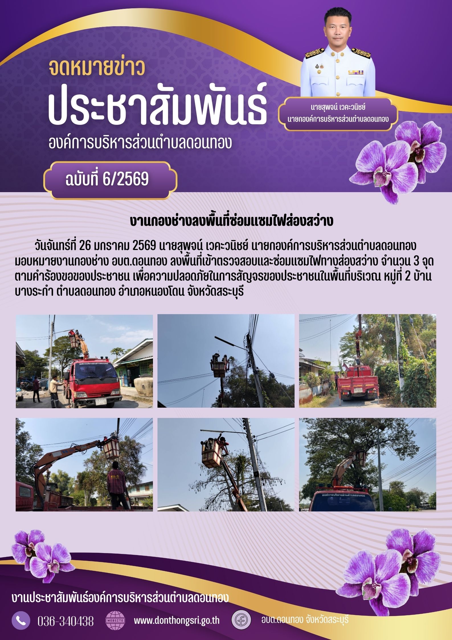 งานกองช่างลงพื้นที่ซ่อมแซมไฟส่องสว่าง
