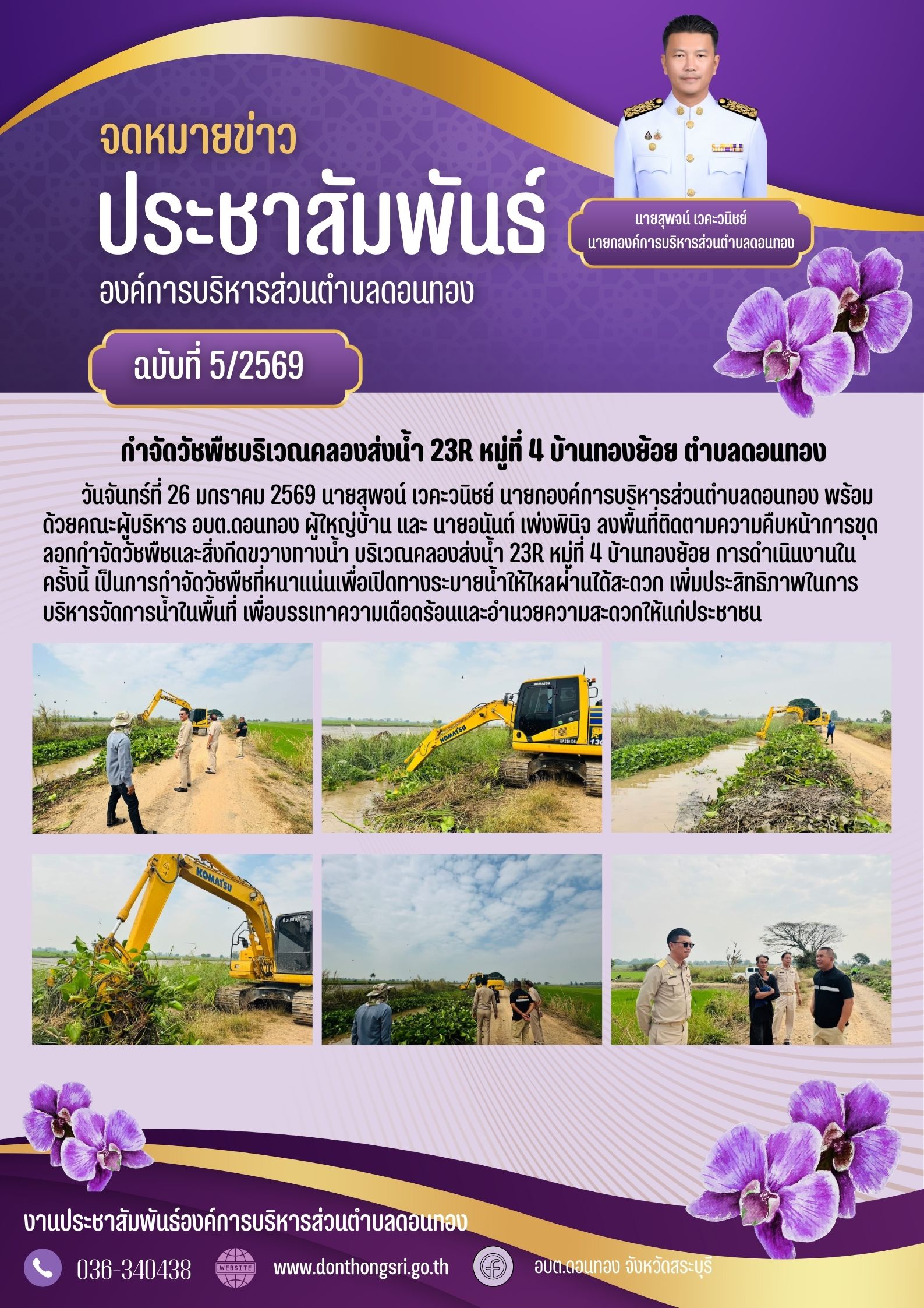 กำจัดวัชพืชบริเวณคลองส่งน้ำ 23R หมู่ที่ 4 บ้านทองย...