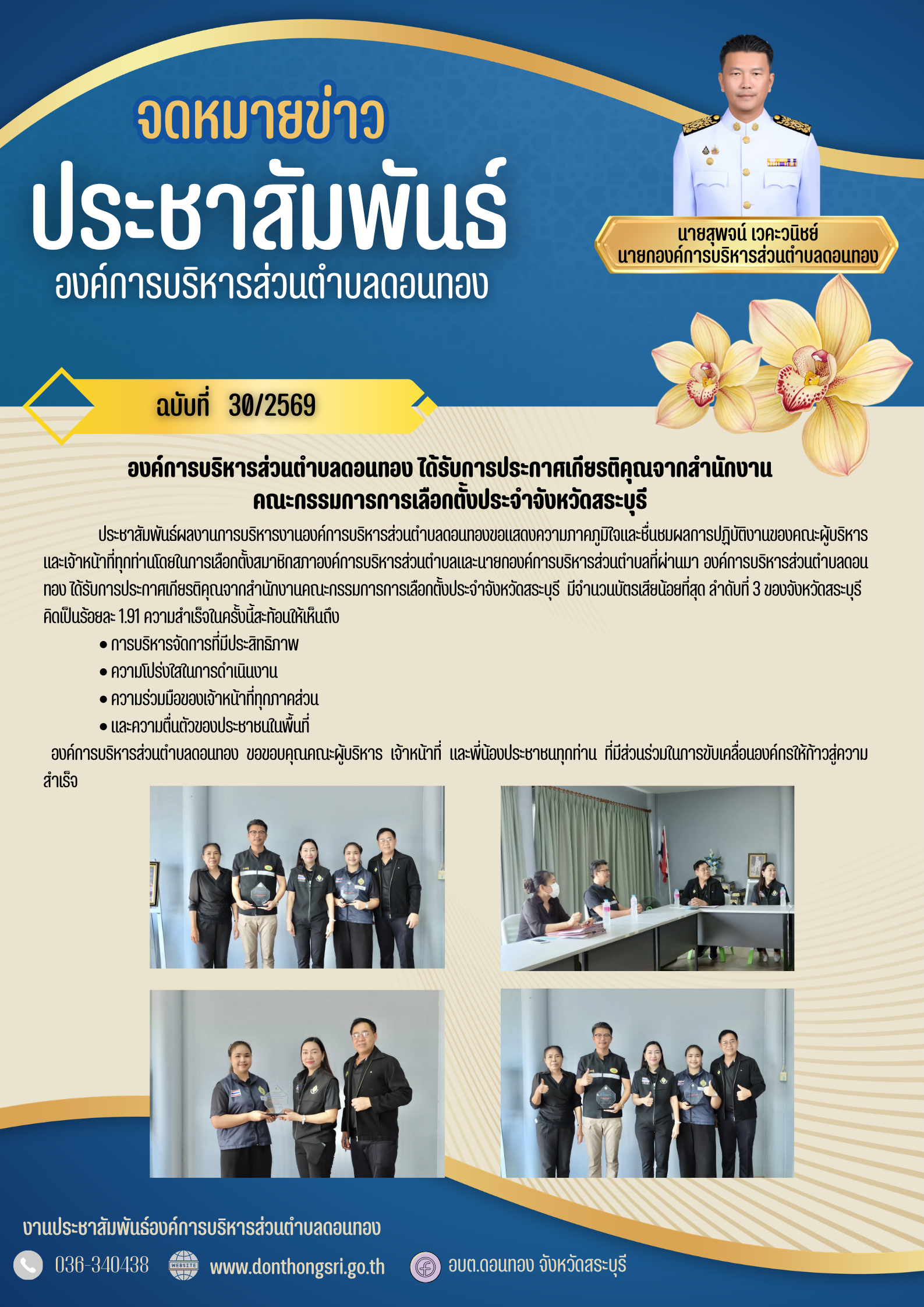องค์การบริหารส่วนตำบลดอนทอง ขอขอบคุณคณะผู้บริหาร เจ้าหน้าที่ และพี่น้องประชาชนทุกท่าน ที่มีส่วนร่วมในการขับเคลื่อนองค์กรให้ก้าวสู่ความสำเร็จ